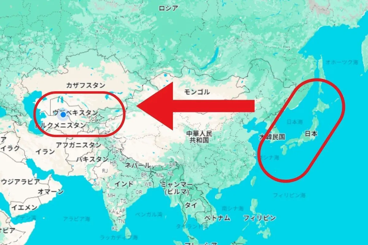 ウズベキスタンは日本の西側にある中央アジアに位置しています。