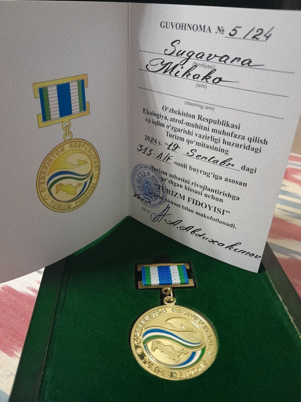 一昨日、2025年5月1日、ウズベキスタンの観光・文化遺産大臣から観光発展に貢献している人へということでメダルを授与致しました。
