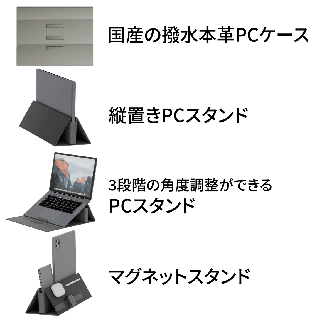 日本製の上質な撥水本革(牛革)を使用し、水やキズから大切なパソコンをしっかりお守りします。
