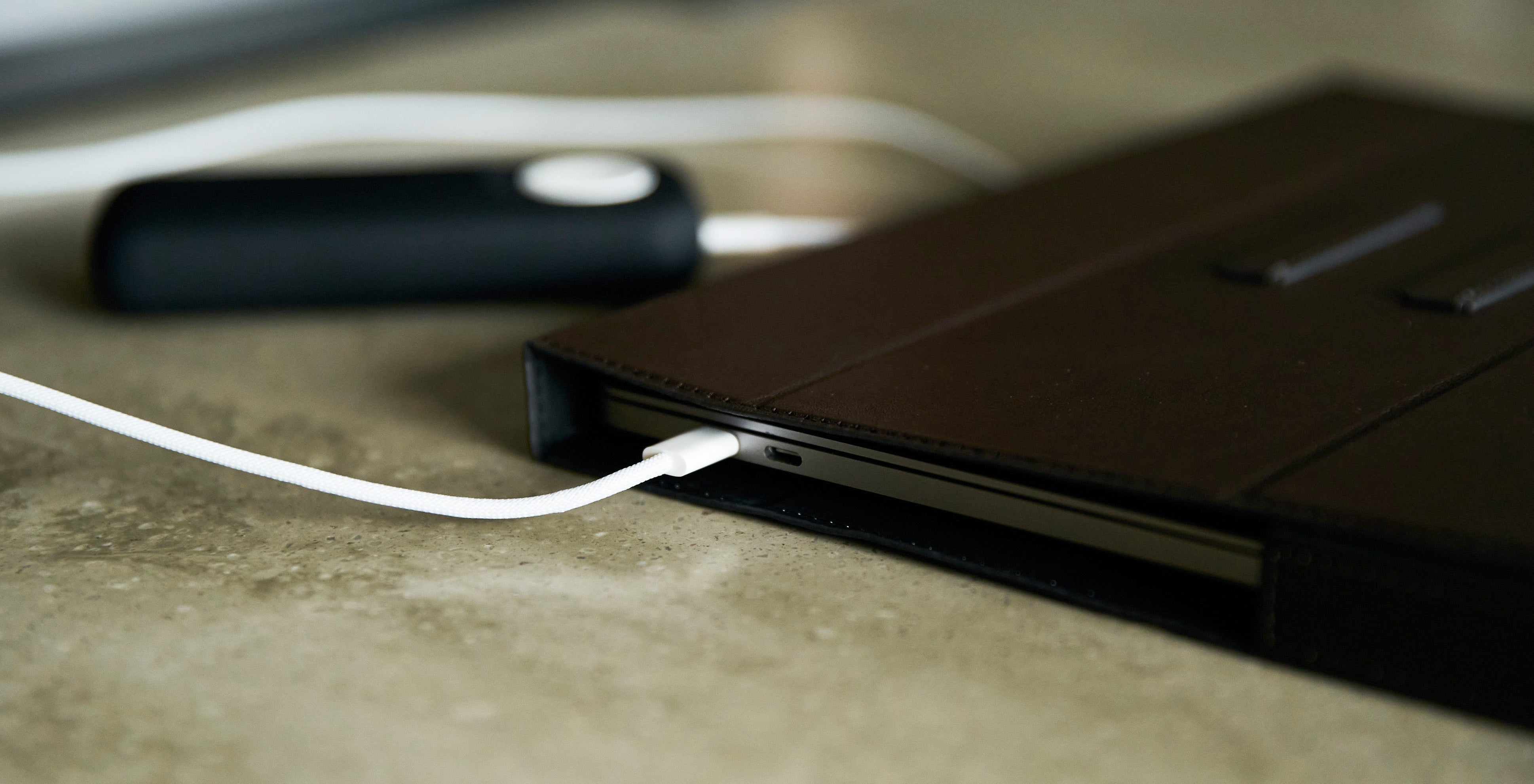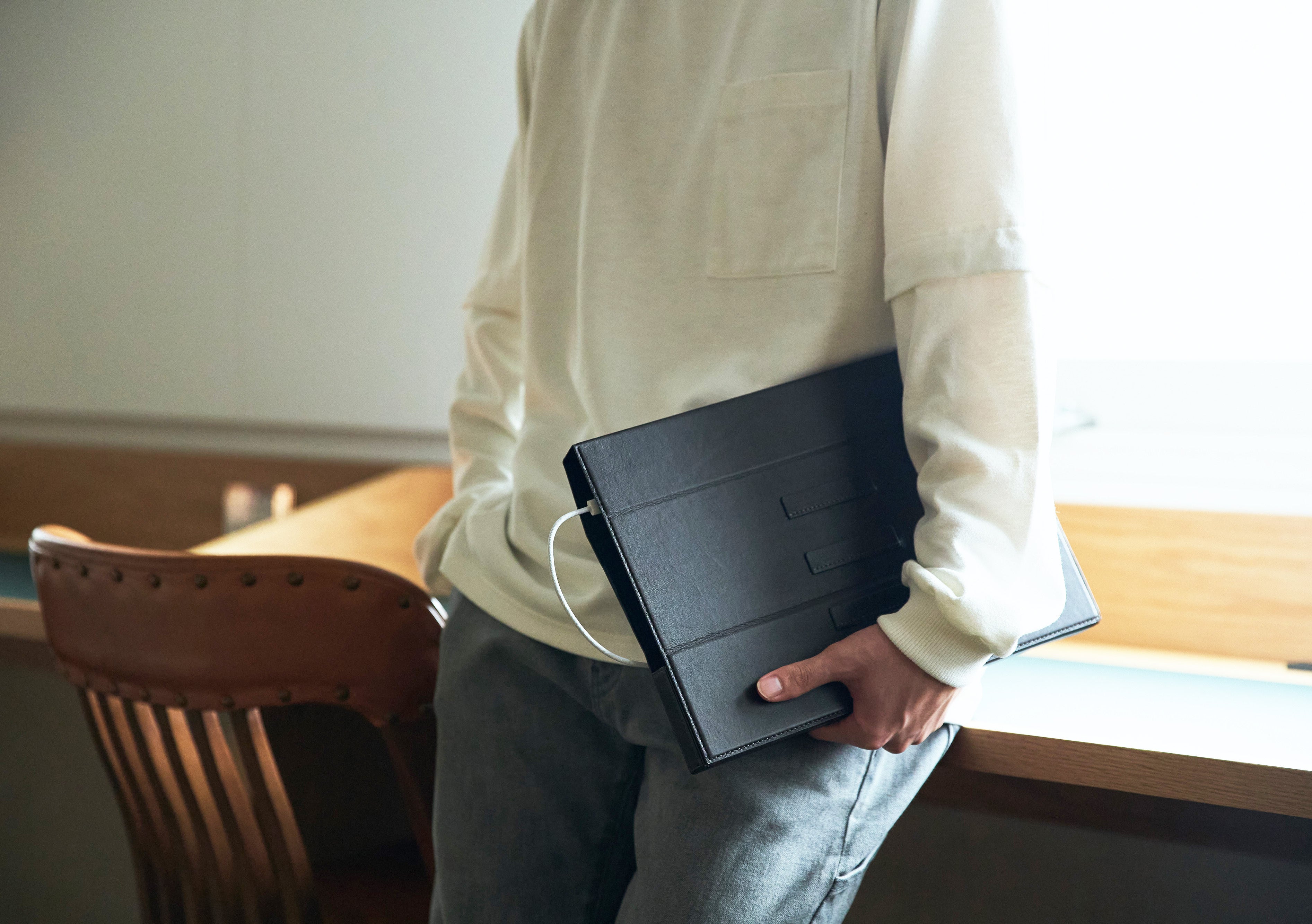 この上質な一枚革が、大切なパソコンを水やキズからお守りします。