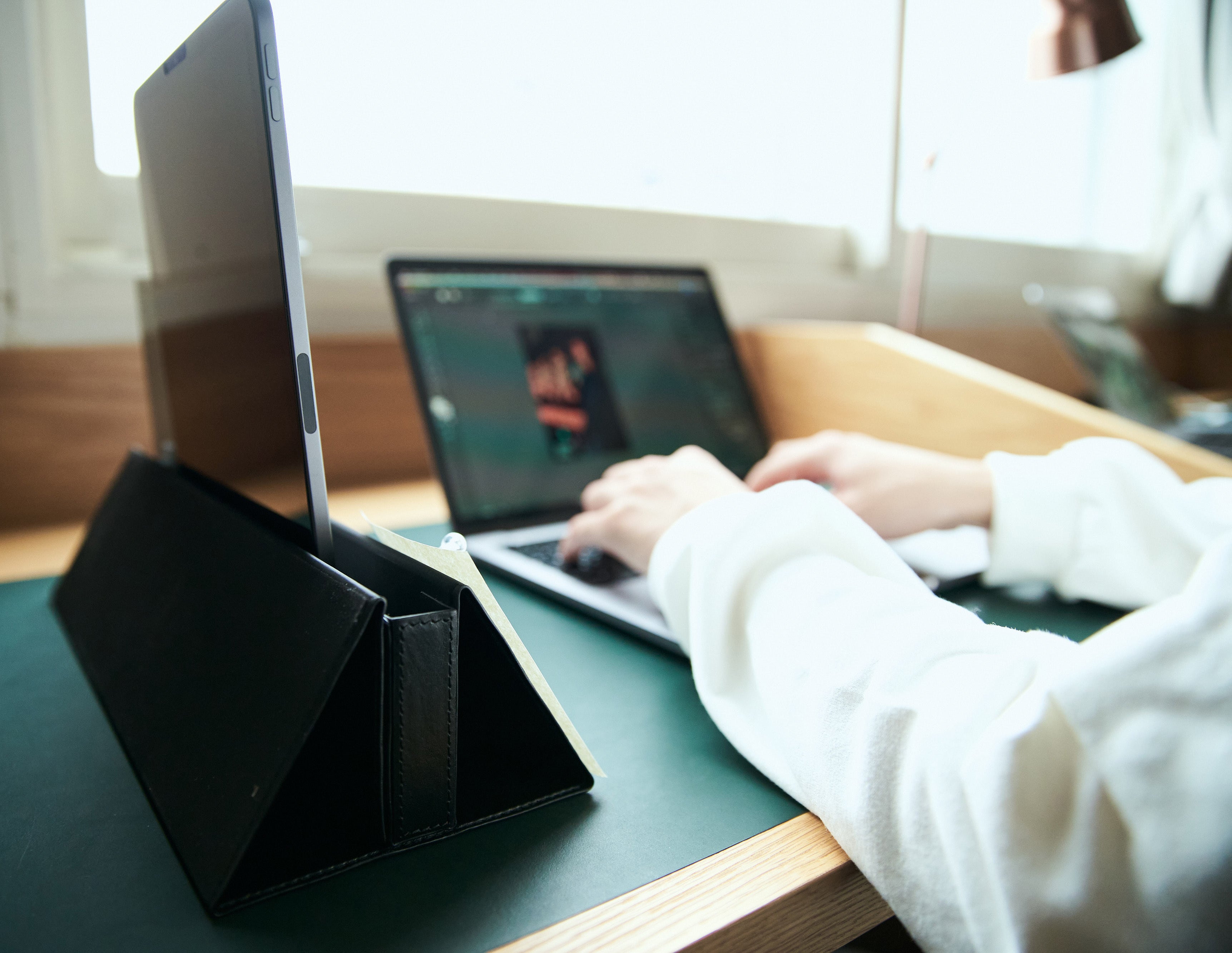 キーボードが打ちやすく、視線も高くなるので背筋が伸びた「良い姿勢」で、快適なパソコン作業ができます。PCケースを開くだけで、どこでも自分だけの『上質なワークスペース』を確保できます。