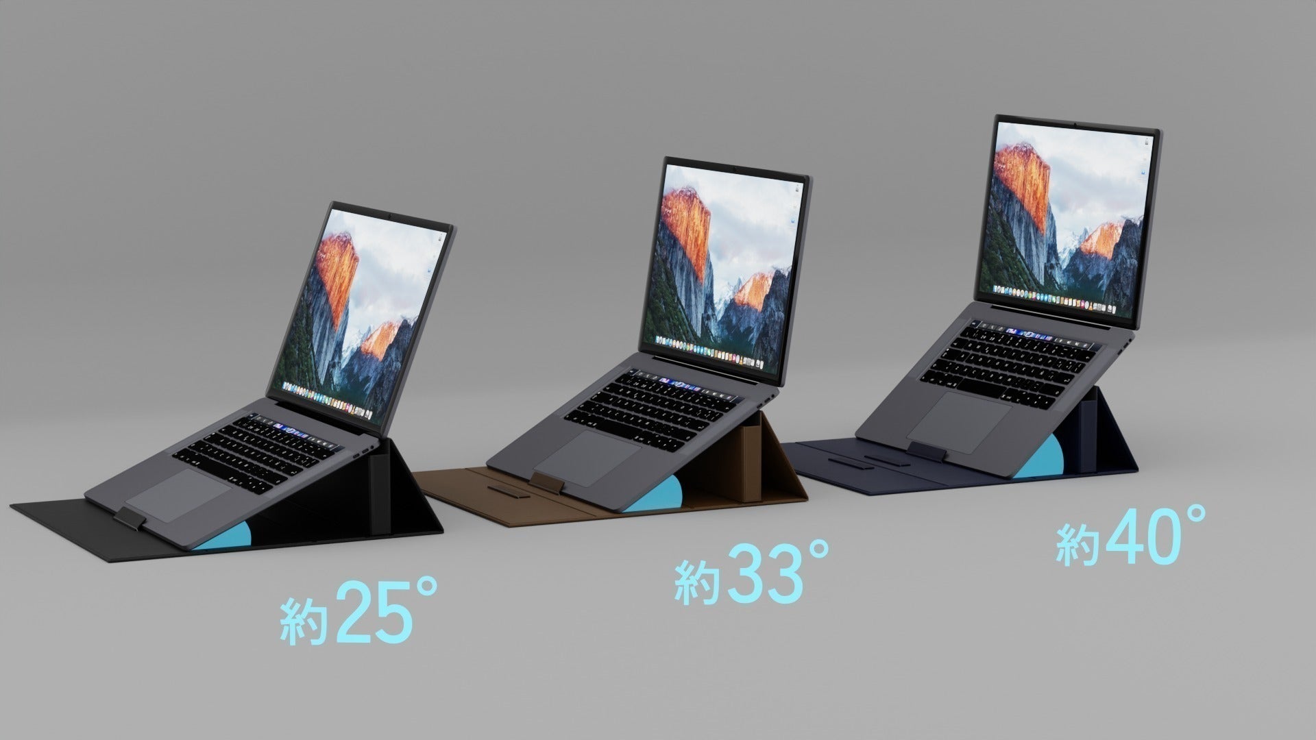 25°以上のタイピングしやすい角度で、3段階の角度調整ができる。