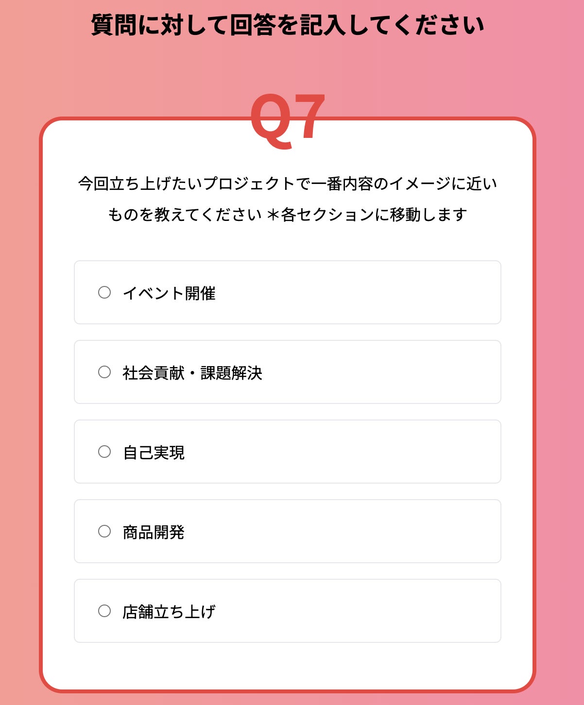 出力結果は全5パターン!実現したい内容に合わせて質問が変動