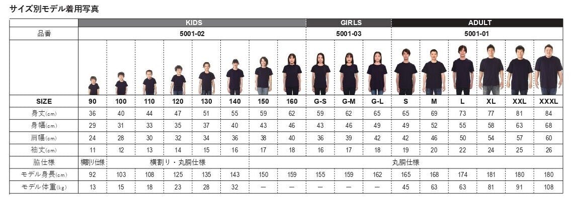 アパレルサイズ表