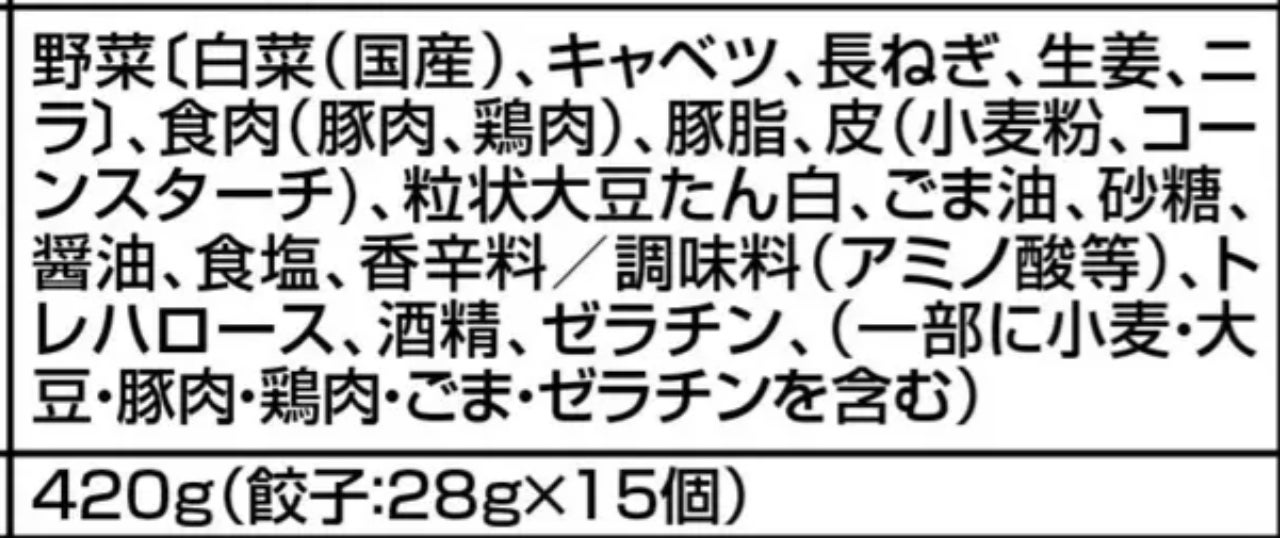 1、餃子1袋 15個 3,500円