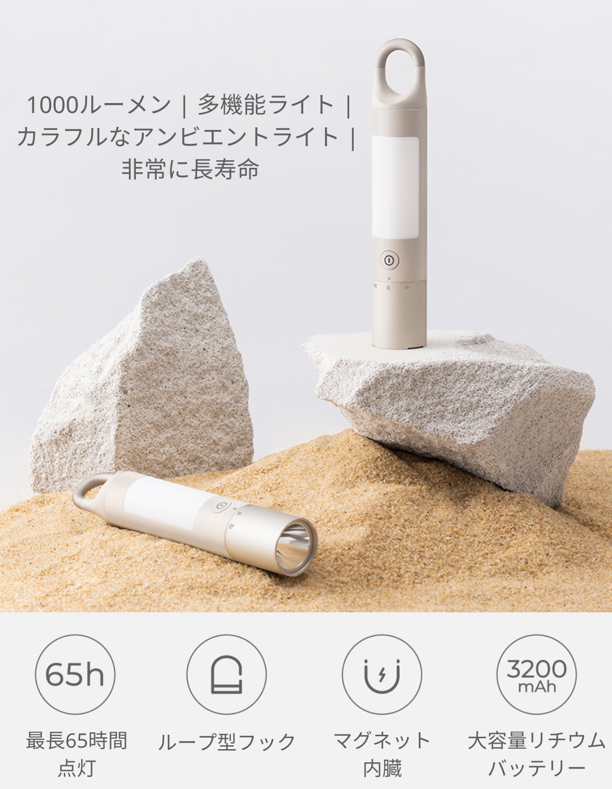 アウトドア時の暗い山道から自宅の寝室まで。日常の癒しの時間から災害などの非常時まで。手に持って歩きながら照らしたい時からDIYなど手を空けて作業したい時まで。