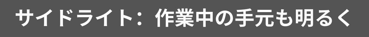 サイドライトモードはハンズフリーでも使えるのが最大の魅力です。作業台などに置いたり吊るしたり、さらにマグネット内蔵なので金属面には貼り付けることも可能です!