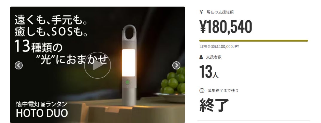 ご支援者、Brightチームです。お世話になっております。プロジェクト開始から46日目で13人ものご支援者の方々より支援頂き、無事プロジェクト終了を迎えることが出来ました。早速皆様のリターンを2024年03月末にお届けできるよう準備を始めております!皆様にご満足いただけるリターンをお届けできるよう、全力で取り組んで参りますので引き続き、「HOTO DUO」をよろしくお願い致します。BRIGHTチーム