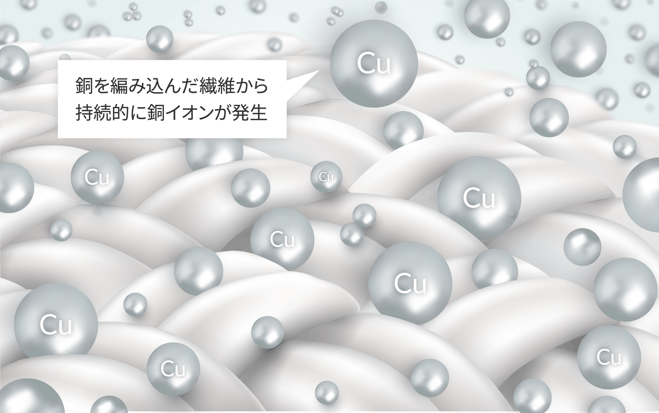 銅イオンには、【超抗菌効果】【防臭効果】【抗ウィルス】【カビ増殖防止】など