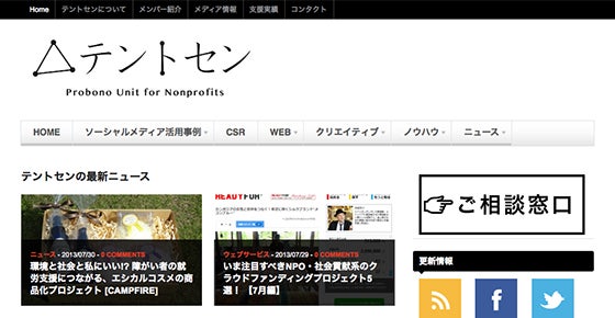 テントセンは、ソーシャルメディアの活用支援によってNPO・NGOの「情報発信」をサポートしていらっしゃるプロボノユニットです。