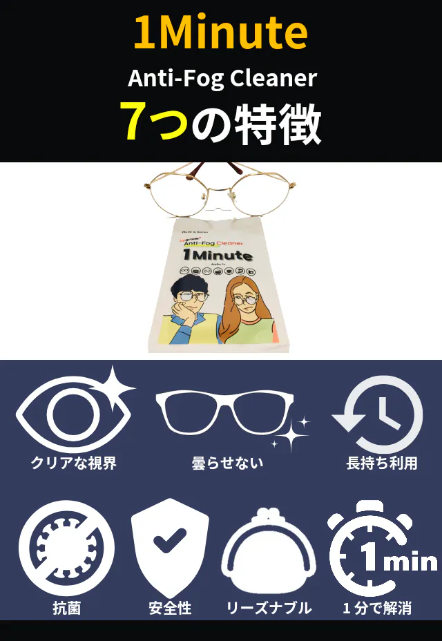 お悩みが当てはまる方は、このページを読んであなたに合う曇り止め対策をお考えください。1minuteは曇りに困った人たちへ快適な生活をもたらします。