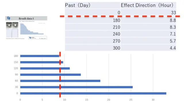 1minuteの持続日数は半年以上、曇らない継続時間が約9時間下回らない結果となりました。初日では33時間曇らず、180日目まで8.8時間を下回っておりません。(メーカー調べ)