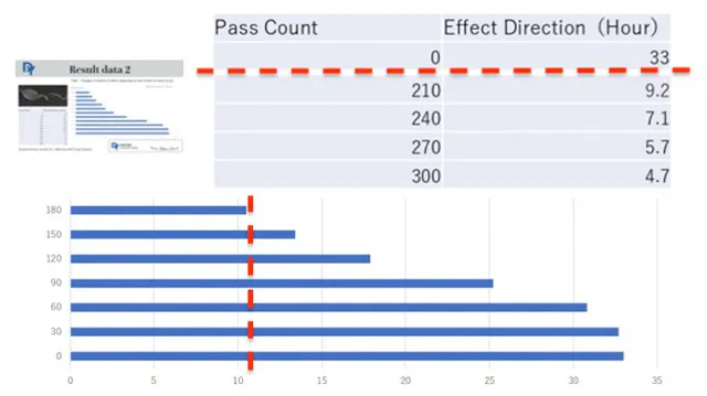 1minuteは210回目の段階で、曇り止め継続時間が最低9.2時間という記録となりました。使いはじめの30回~90回目までは、33~25時間の曇り止め持続時間を保つという結果になりました。(メーカー調べ)