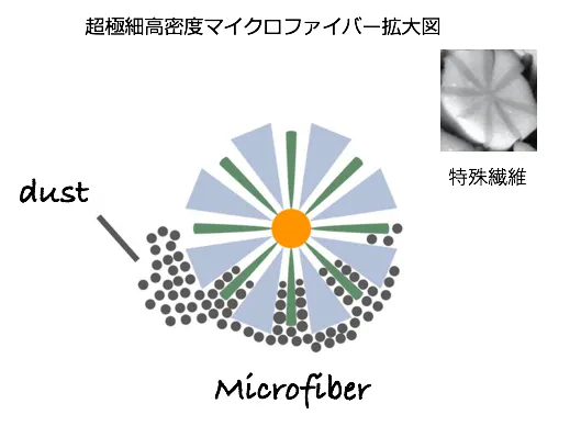 1minuteのクロス生地はきめ細かいマイクロファイバー繊維でできております。