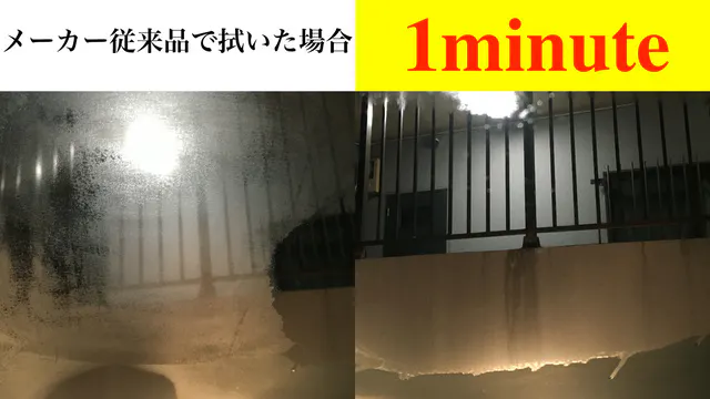 1minuteで拭いたほうは視界がハッキリ!!
