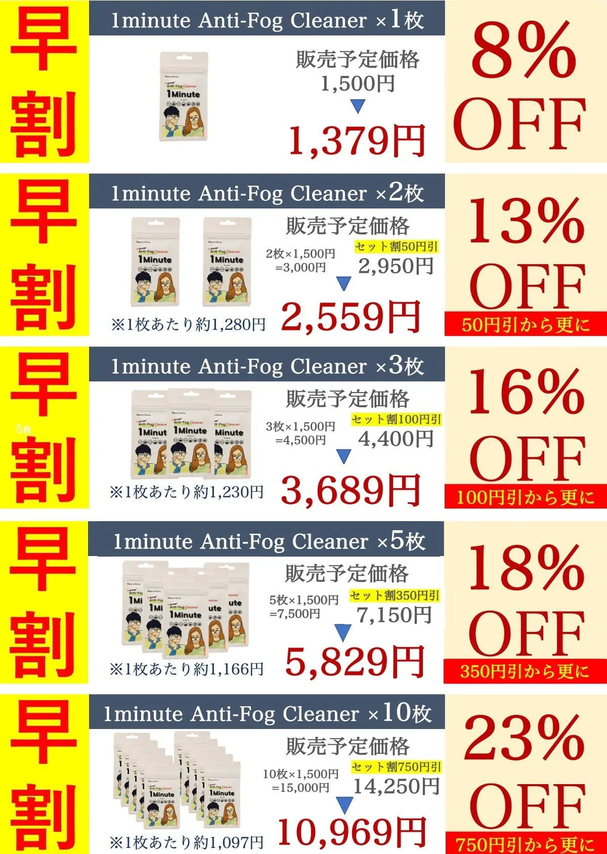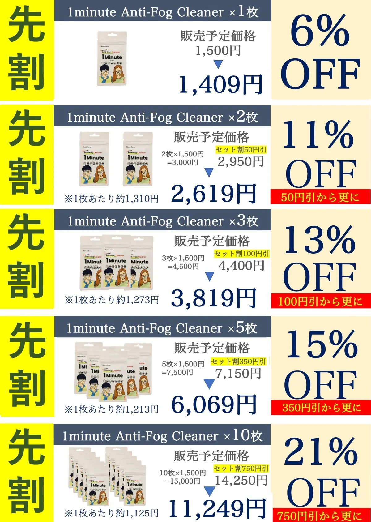 今回の1minuteも、前回"Magic Anti-Fog cloth"同様に日常生活の中で必要になる様々な場面を絶えず考えて研究しました。前回多くのサポーター様の関心と応援で1次/2次はもちろん海外ファンディングも成功裏に終了しました。また、世界のさまざまな国に輸出ができました。今回の新製品1minuteで皆様の不快感を解決するのに少しでも助けになることを願っております。