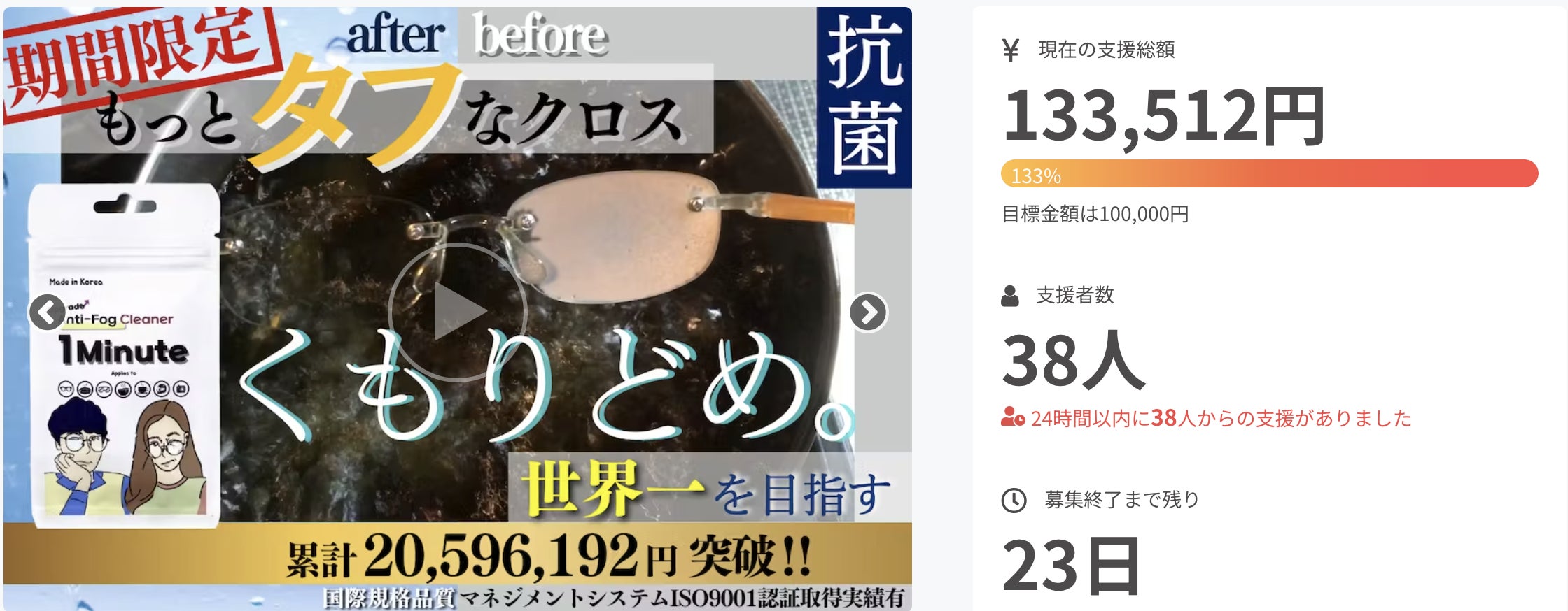 昨晩で目標値を達成し、現在133%に到達いたしております!