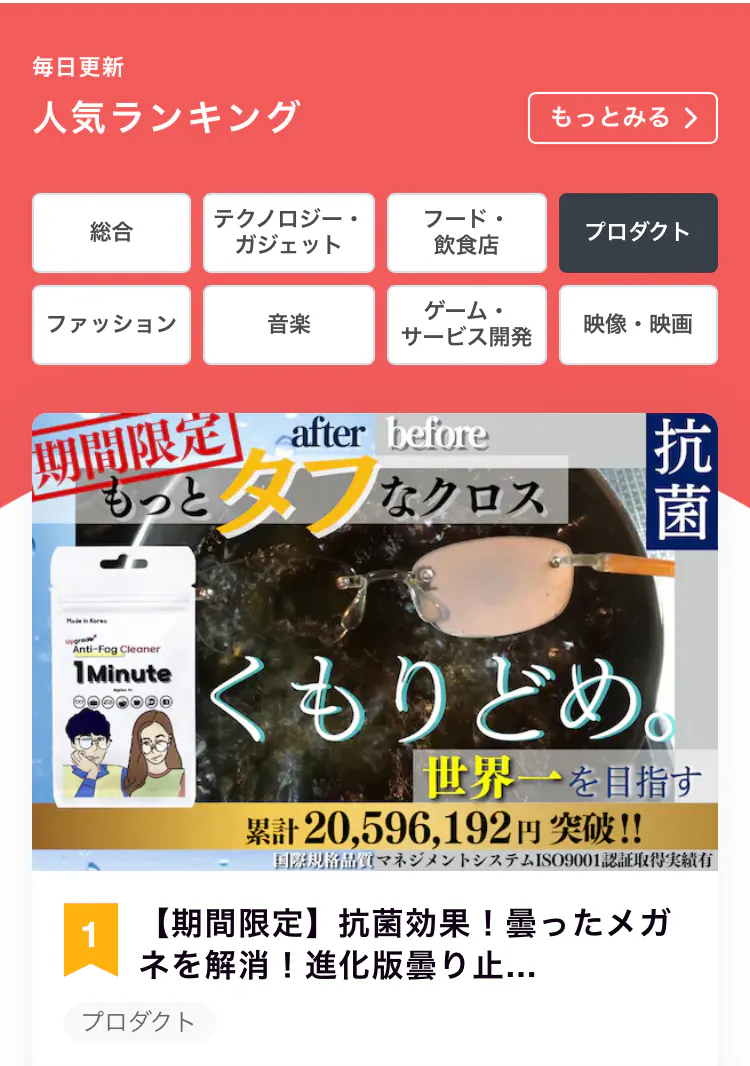 本日なんと、人気ランキングプロダクト部門1位を取得させて頂きました!
