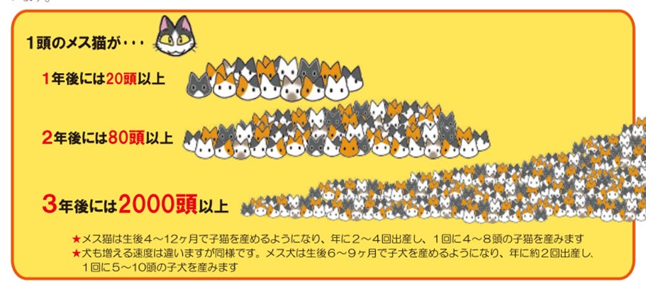 ノラ猫の子たちは、そのほとんどが飢餓や、カラスやタヌキ、ハクビシンの餌食となり、無残にも死んでいきます。それでも飼い主のいない猫が増える要因は大きく3つあります。