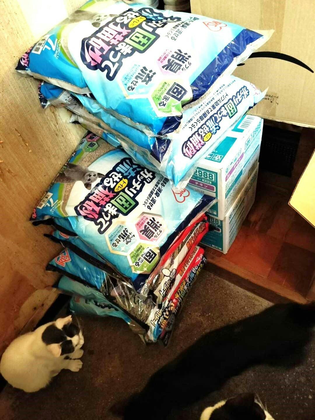 トイレの砂とフードをお渡しし、猫達の様子もしっかり確認します。