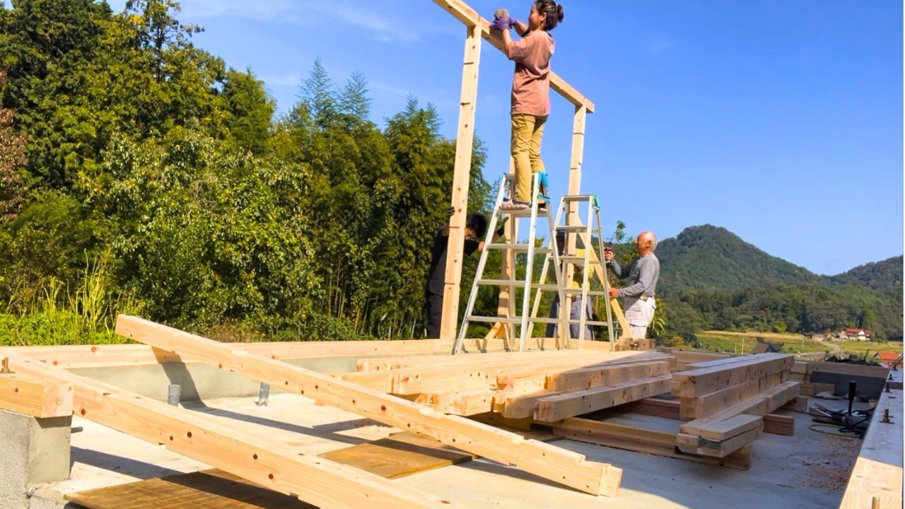 加工所は、先輩に習いながら自分たちで建てています