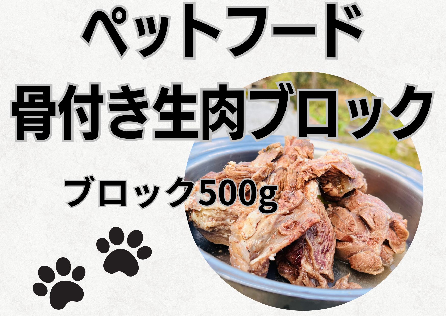 骨付き肉とブロック(1cm角にカット)のペット用のフードを追加します。
