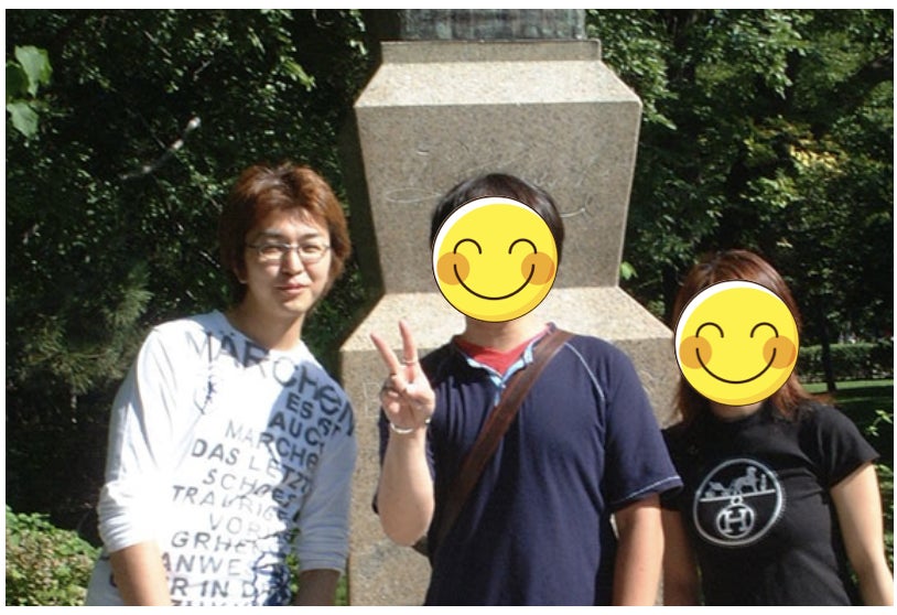 中央にいるのが先輩です。(許可を得ていないので顔は隠しています)