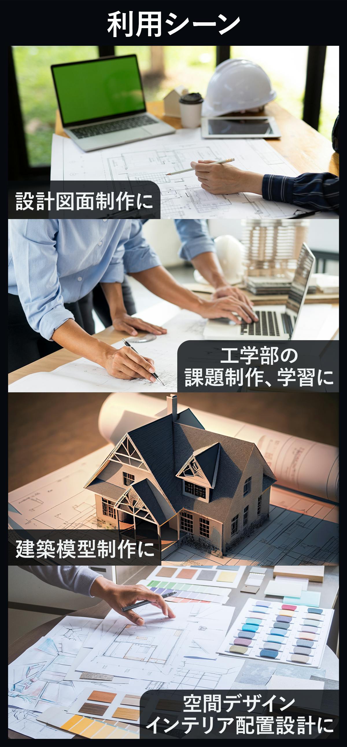 アプリ上で大まかな数値や書き込みを入れておけば、エクスポートして画像にしたり、DXFファイルで書き出してCADで更に細かく編集していくこともできます!