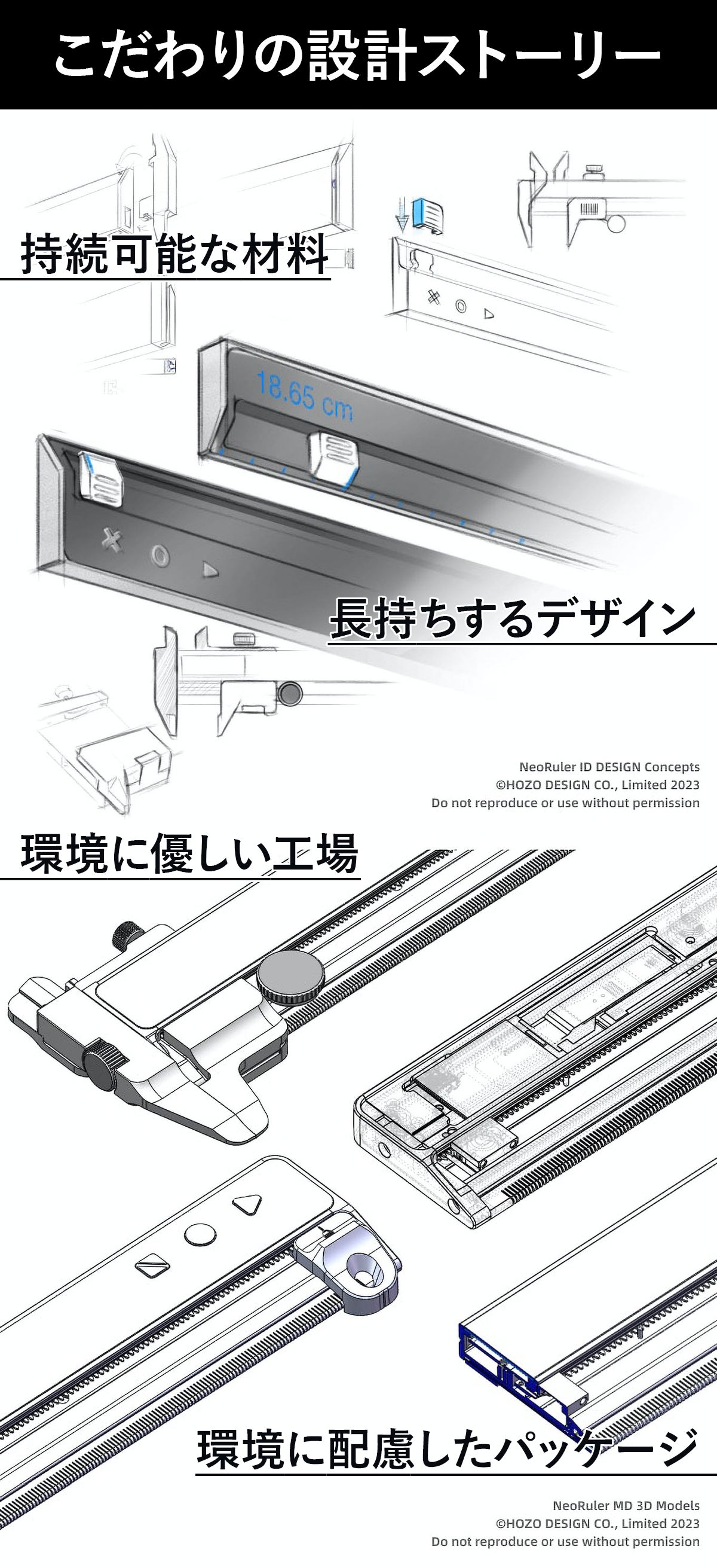 お客様に信頼していただける高品質で高寿命な製品をお届けするために、NeoRulerは部品ひとつひとつに拘り、最適な素材を繰り返し検討、慎重に選択し製造しています。