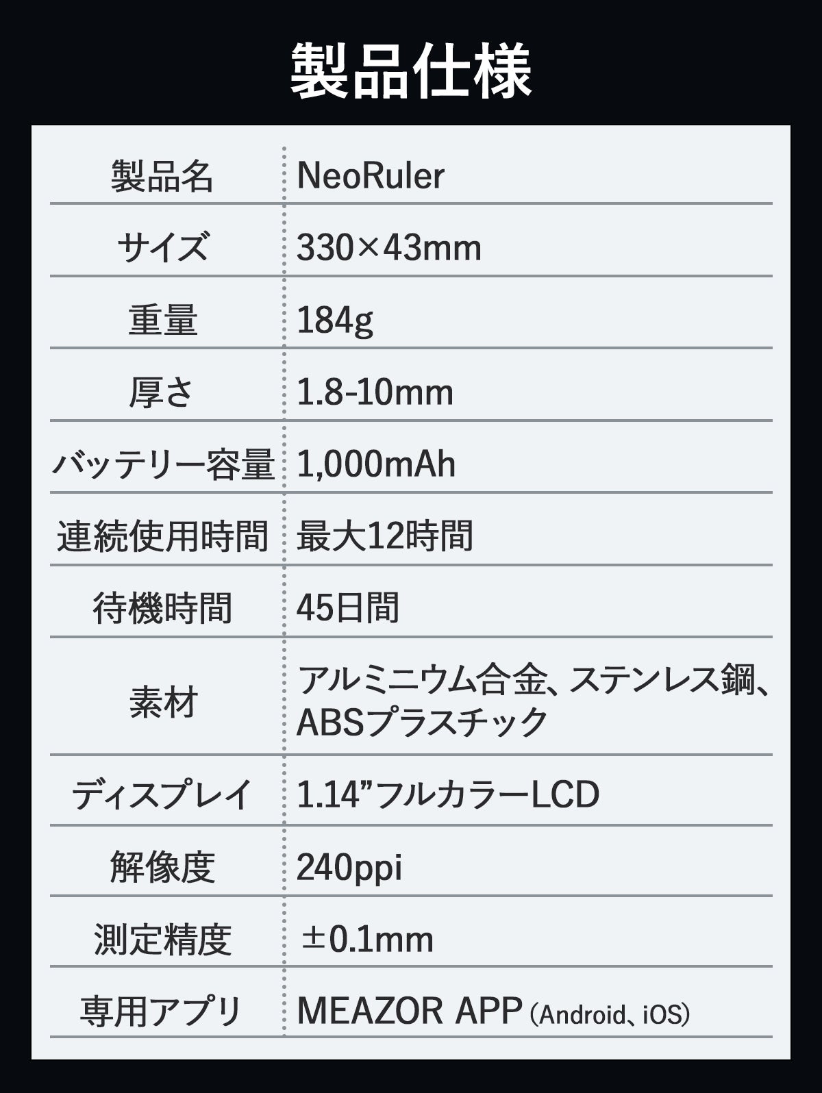 ※アクセサリーリターンはNeoRuler本体と組み合わせて使用する付属品です。NeoRuler本体を購入いただかない場合でも購入は可能ですが、付属品のみではご使用いただけませんのでご注意ください。