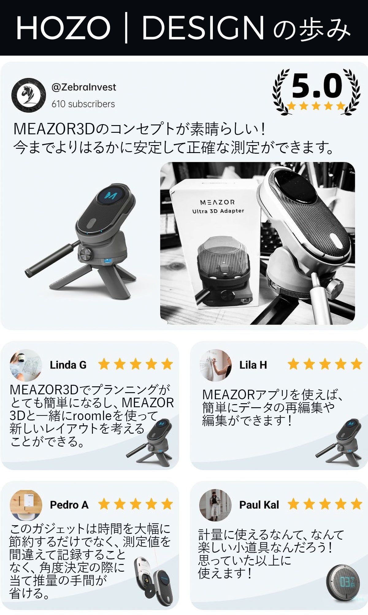 私たちは、情熱あふれるクリエイティブチームであり、経験豊富なデザイナーとエンジニアからなるチームです。創設者であり、GDA賞を受賞したデザイナーのピーター・リアン、30年以上の消費電子業界での経験を持つエンジニアリングディレクターのジェームズ・ルオなど、過去3つの成功したフラッグシップ製品の設計をリードした経験豊富なリーダーたちと共に、ユーザー満足の高い製品を作り出す自信を持っています。今後も世界中のユーザーに向けて「Design for Life」のコンセプトを取り入れたスマートツールの開発とデザインに取り組んでまいります。