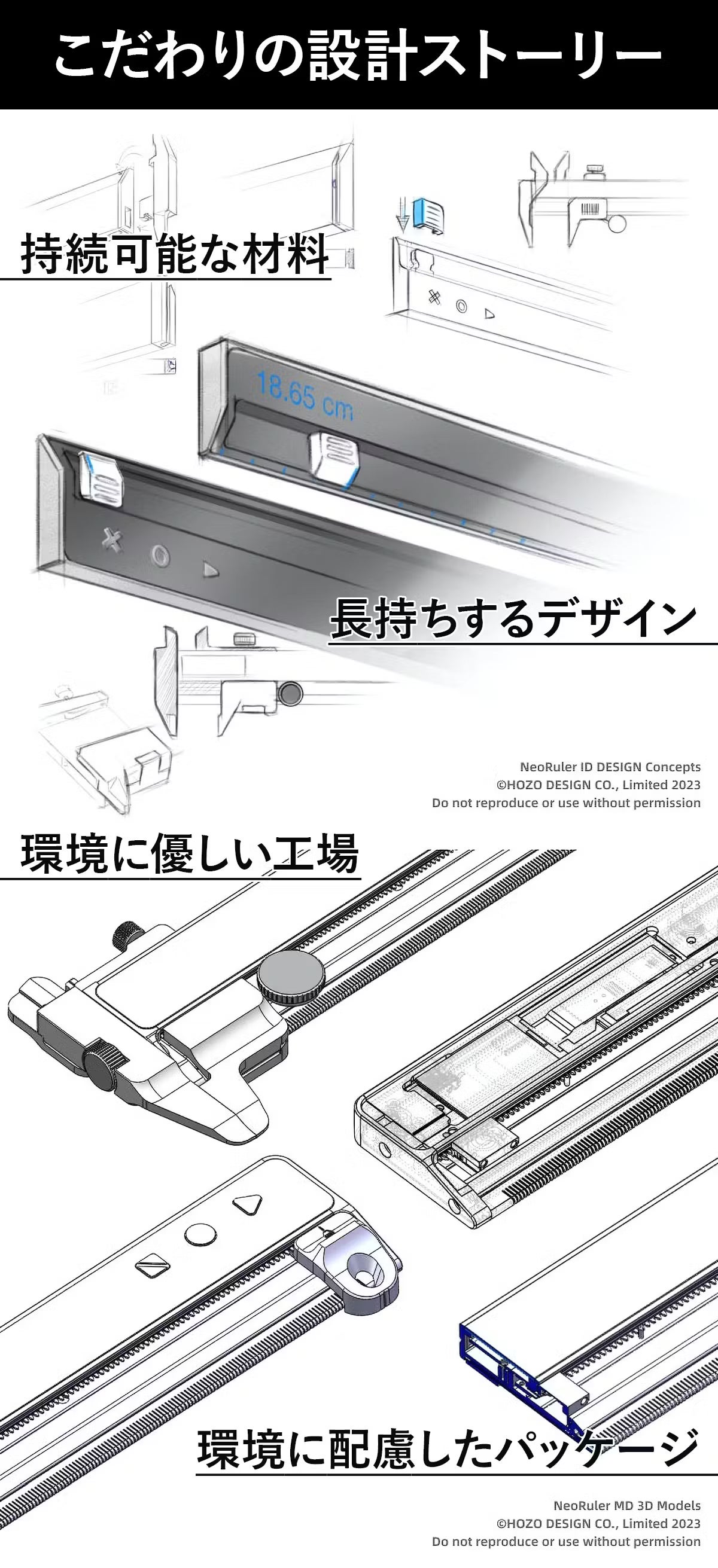 NeoRulerは、持続可能な設計と環境に対する配慮が組み込まれたツールです。そのサイズ、重量、バッテリー性能、素材選定、製造プロセスなど、さまざまな要素が調和し、使い手に品質と環境への意識を提供します。