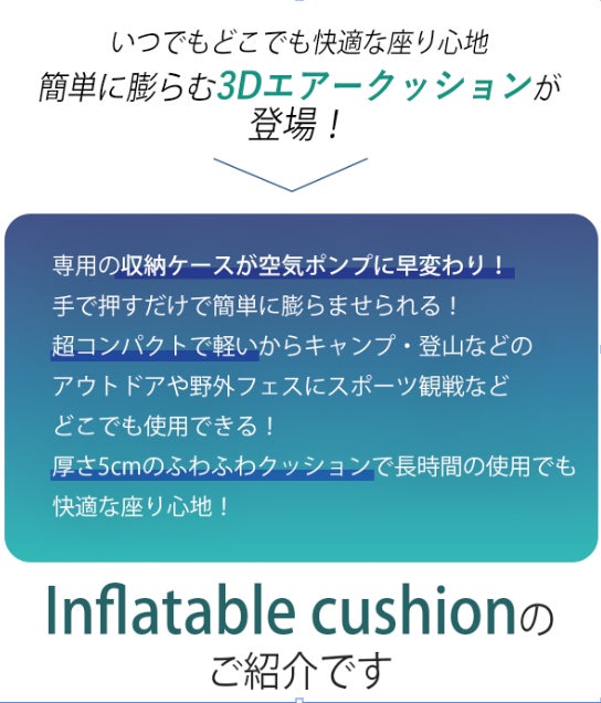 【累計出荷数1万個】どこでも簡単に膨らませられる厚さ5cmの3Dエア―クッション