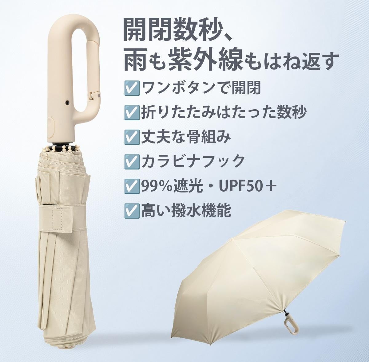 【99%遮光!超撥水!折り畳み約5秒!】ワンタッチ楽々開閉の晴雨兼用折りたたみ傘