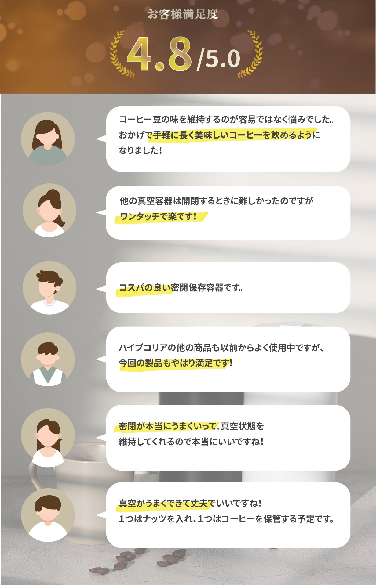 耐久性抜群のステンレス真空キャニスターで珈琲豆の鮮度を守り長期間保存可能!