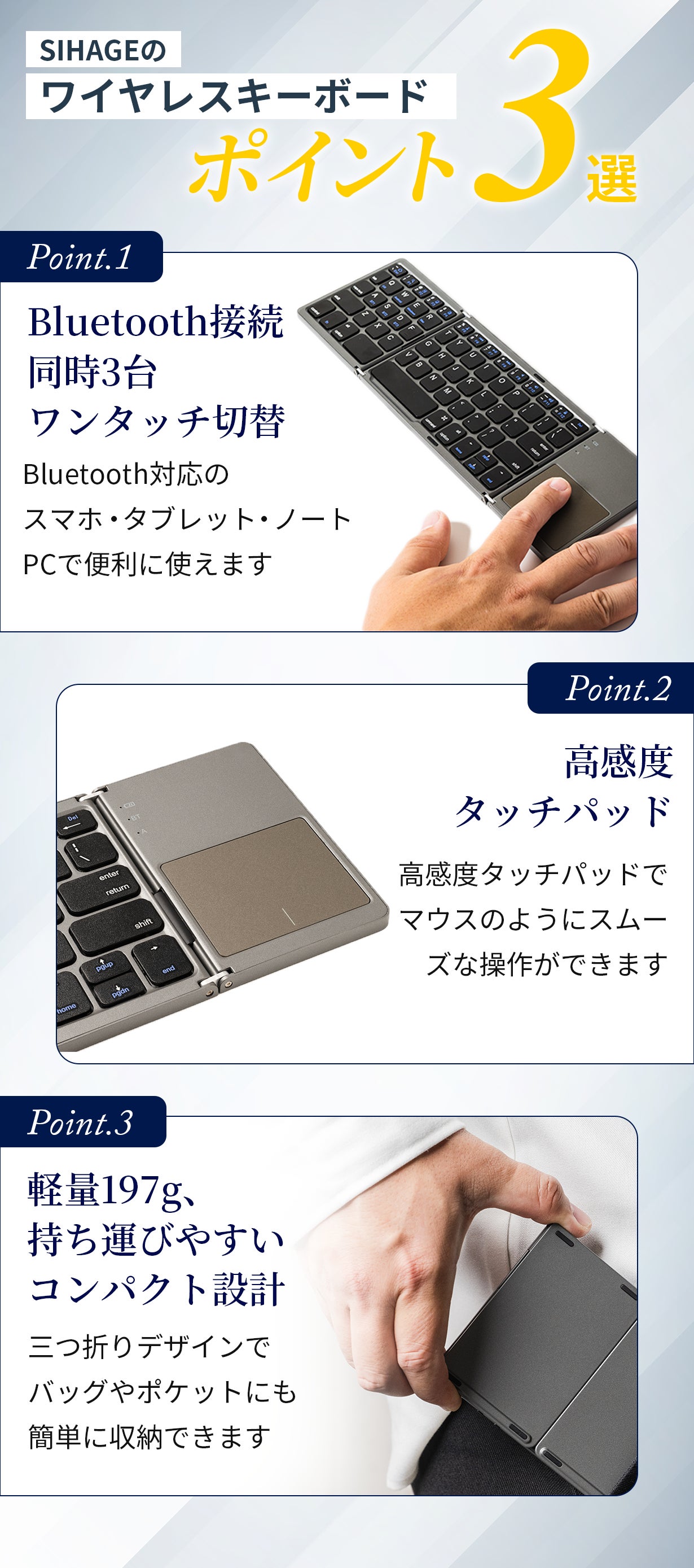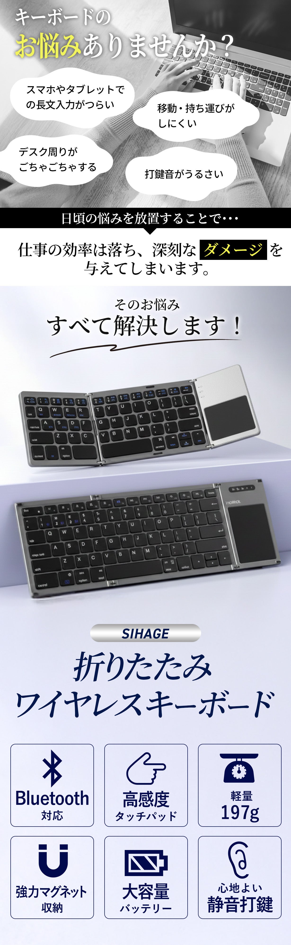 197gの超軽量!折りたたみ式ワイヤレスキーボードで快適作業を