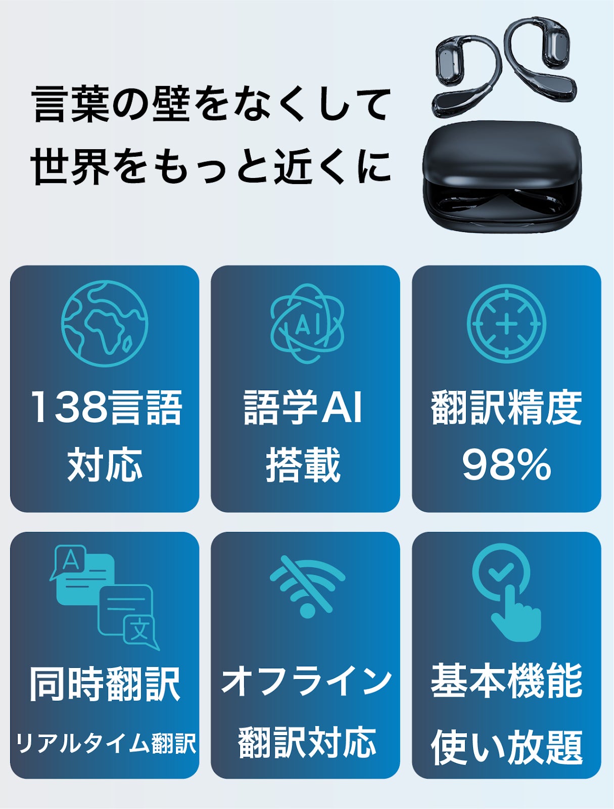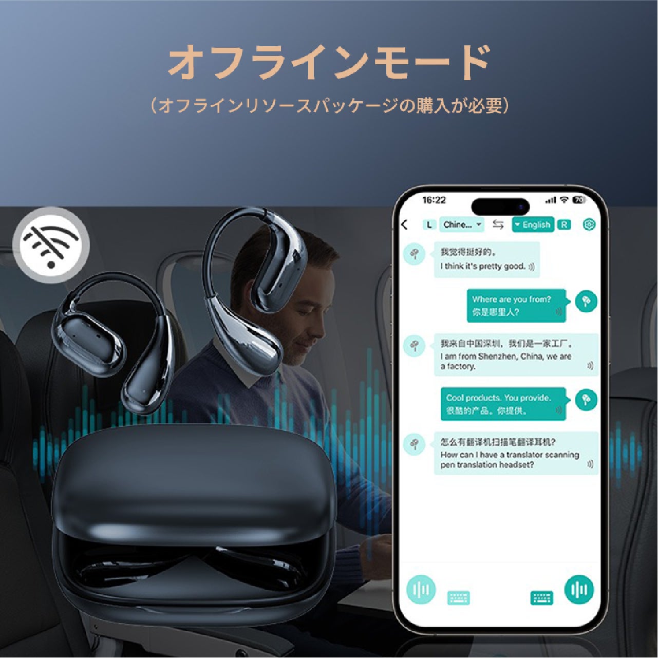 【Bluetooth 5.4搭載】138言語対応の世界とつながる翻訳イヤホン VTrans-16