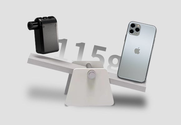 「SEIKOU A2」は、コンプレッサーをモーターで駆動し、空気を吸い込むことで大幅な小型化を実現しました。 重量はわずか115gで、従来のフロアポンプの1/10以下です。