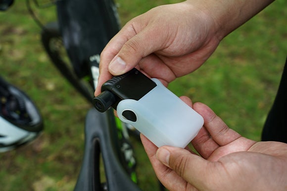 もう狭い玄関に無理して置く必要はありません!ワイヤレスイヤホンケース程度のサイズなので、サイクリングジャージのポケットやサドルバックなどに簡単に収納することができます。