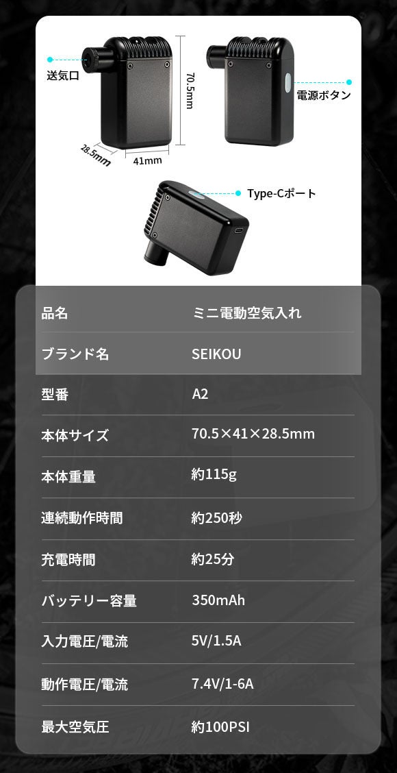 仏&米バルブ&ボールに対応!ミニ電動空気入れ「SEIKOU A2」