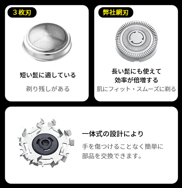 ※「45日使用可能」は1日1回約2分間の使用の場合で計算された結果です。メーカー独自のテストですので、あくまで参考値となります。使用期間は実際の使用状況や個人の髭剃り習慣によって異なります。