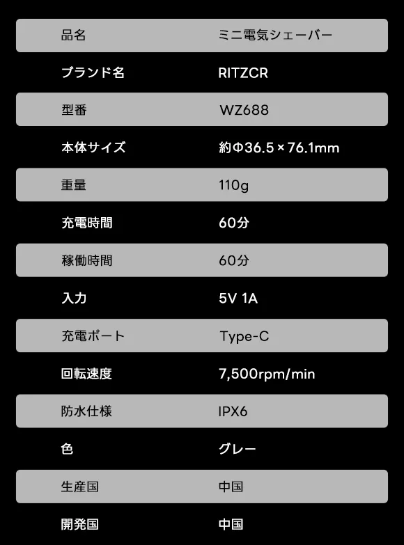 また、RITZCRはIPX6の防水性能を備えており、丸洗いもOK。そのため、シャワー中にシェービングすることもできます。