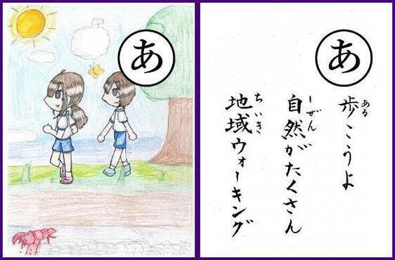 1月12日に投稿した大人の方が描いた絵札と、今回のお子さんが描いた絵札。