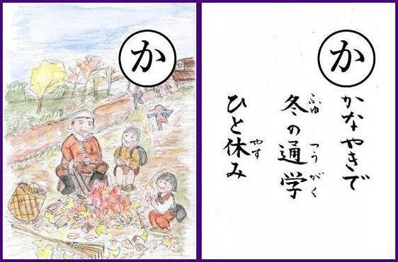 寒い冬の日、通学途中のかなやきは、子どもたちの体も心もほっこりと温めてくれたんだろうなあと想像しながらこの絵を描きました。