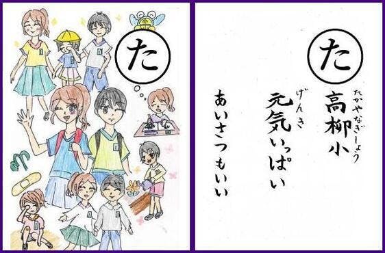 2階の渡り廊下には大判サイズの風早南部かるたが展示してありました。
