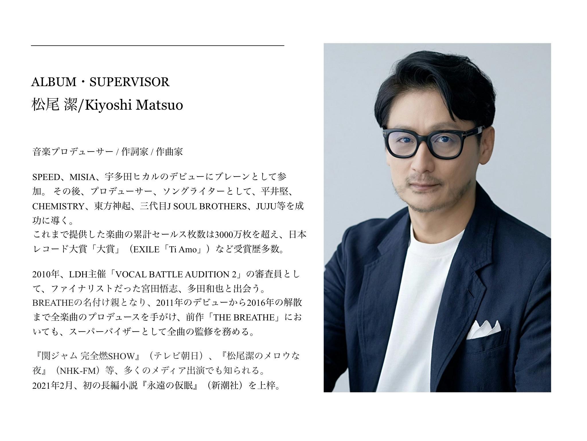 今回制作するLovers’ Voices第二弾にはBREATHEの名付け親でもあり、前作「Lovers’ Voices〜松尾潔作品COVER BEST〜」のサウンドプロデュースを手掛けてくださった松尾 潔さんにアルバム・スーパーバイザーとしてご参加いただき、アルバム全体において強力なサポートをしていただくこととなりました。