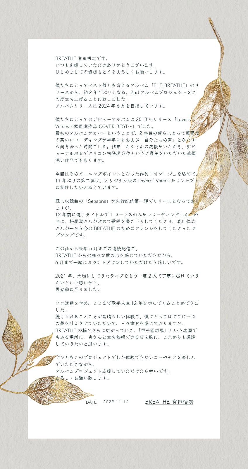 ▪️BREATHE 宮田悟志 プロジェクトへの想い▪️