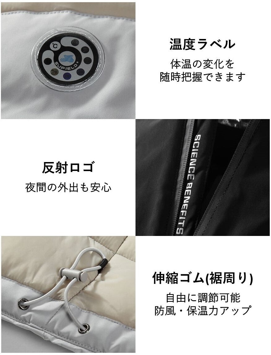 裏地にシルバーハニカム・リフレクティブ素材を採用しており、体から反射する遠赤外線熱を効果的に反射し、暖かさを保ちます。
