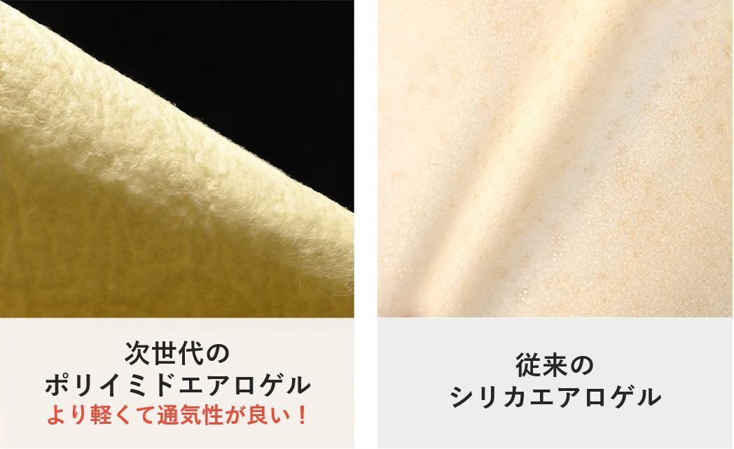 進化版はポリイミドエアロゲル素材を採用しており、従来のシリカエアロゲル素材もより軽く、通気性が向上しました!