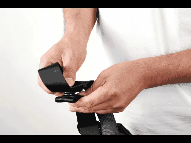 ストラップ位置をマグネットボタンで簡単に変更できます。